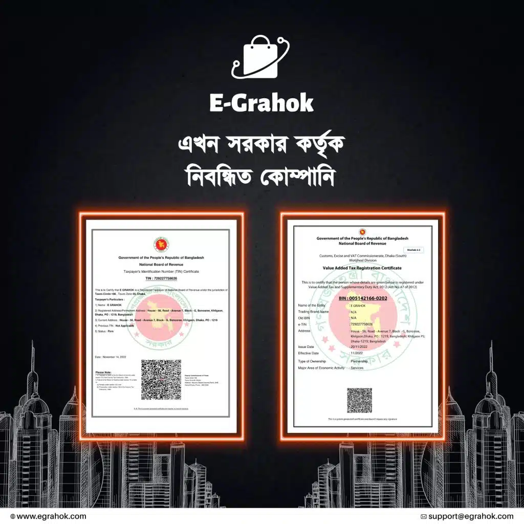 আমরা সরকার নিবন্ধীত প্রতিষ্ঠান, আমরা ট্রেডলাইসেন্স,বিন এবং টিন এবং ডিজিটাল বিজনেস আইডেন্টিটি সার্টিফিকেট মেইনটেইন করি।
